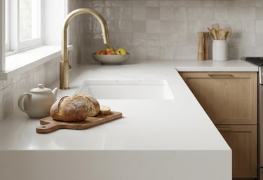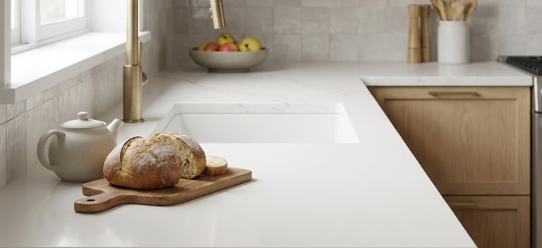Apresenta tonalidade branca pura, com visual clean e contemporâneo. Altamente resistente, de baixa porosidade e fácil manutenção, é ideal para bancadas, cozinhas, banheiros e ambientes modernos.